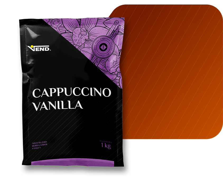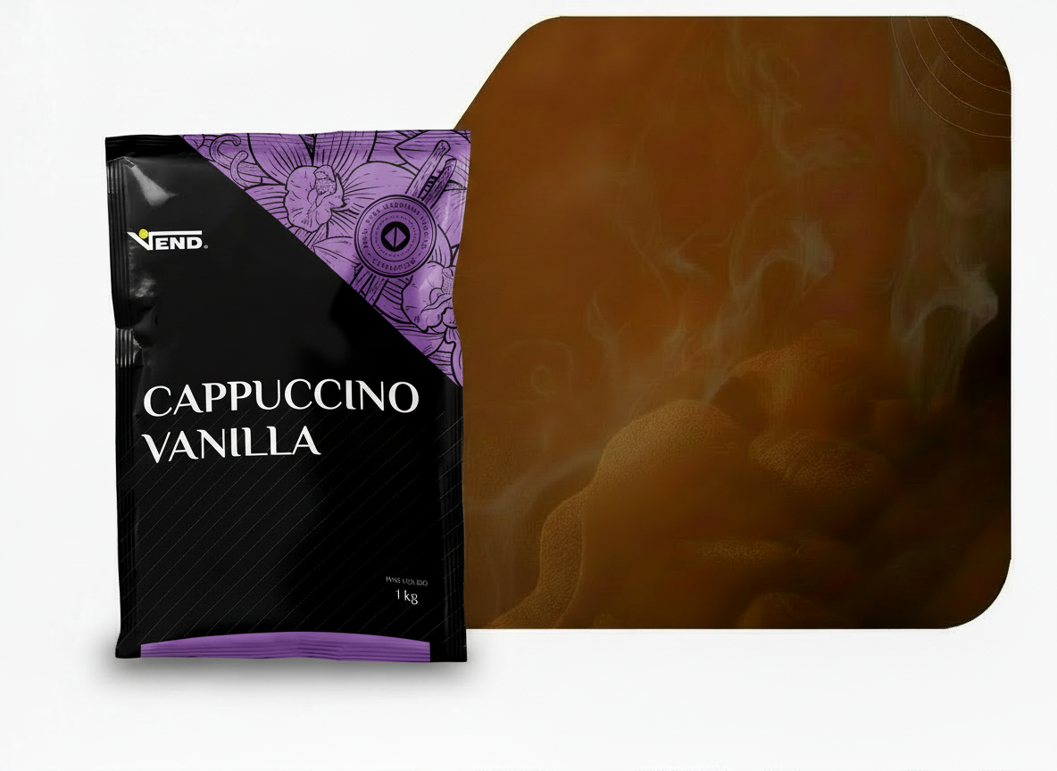 Cappuccino Vanilla VEND — o clássico cappuccino com um toque delicado de baunilha. Cremoso, aromático e perfeito para máquinas automáticas.